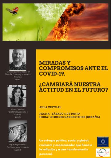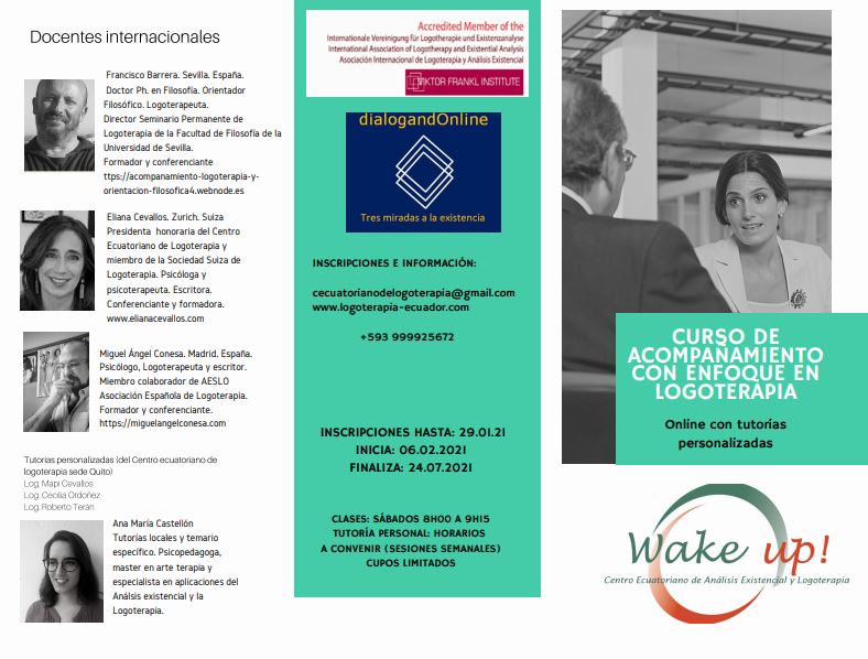 El Centro Ecuatoriano de Análisis Existencial y Logoterapia y dialogandOnline convocan desde aula virtual el encuentro:"Miradas y compromisos ante el Covid-19. ¿Cambiará nuestra actitud en el futuro?.